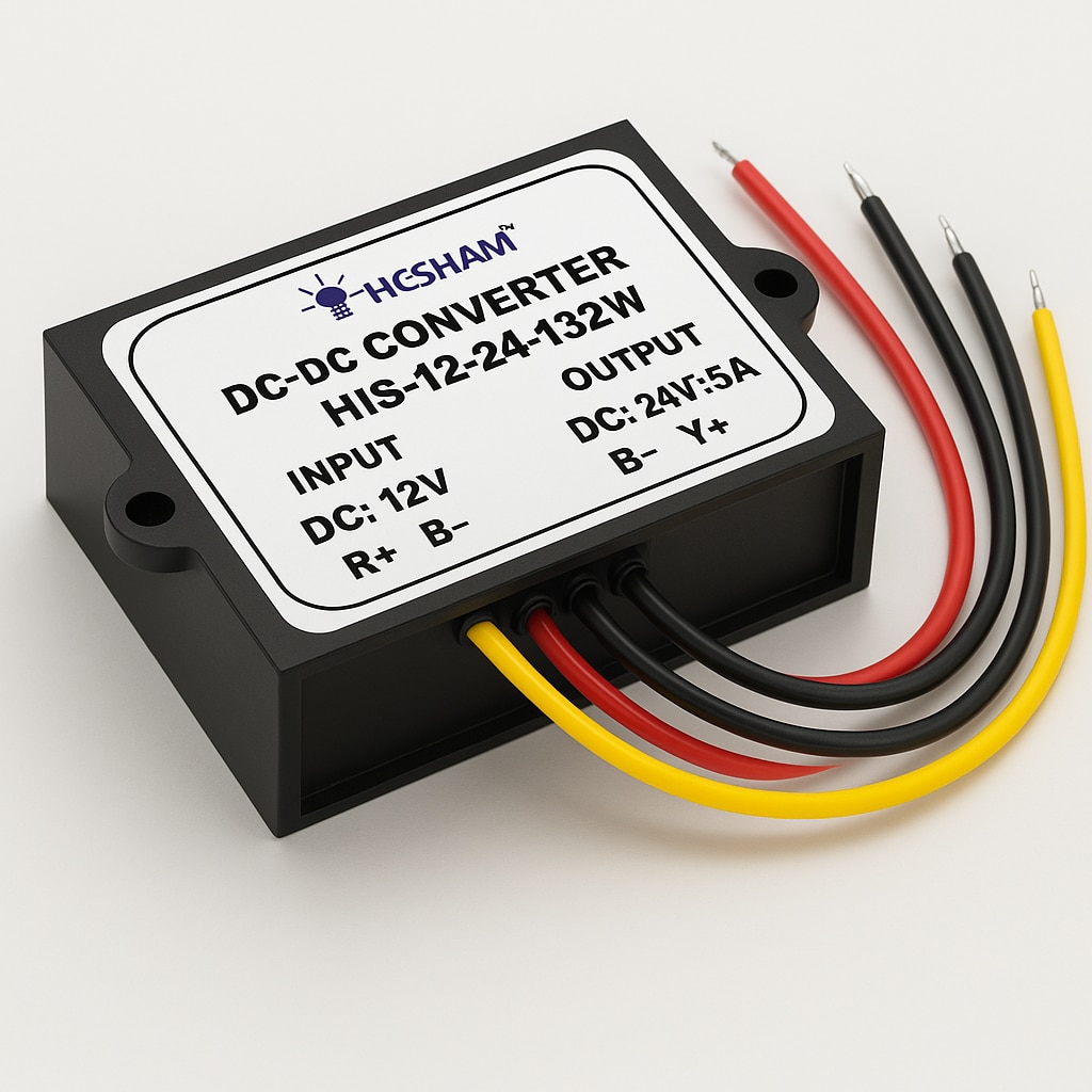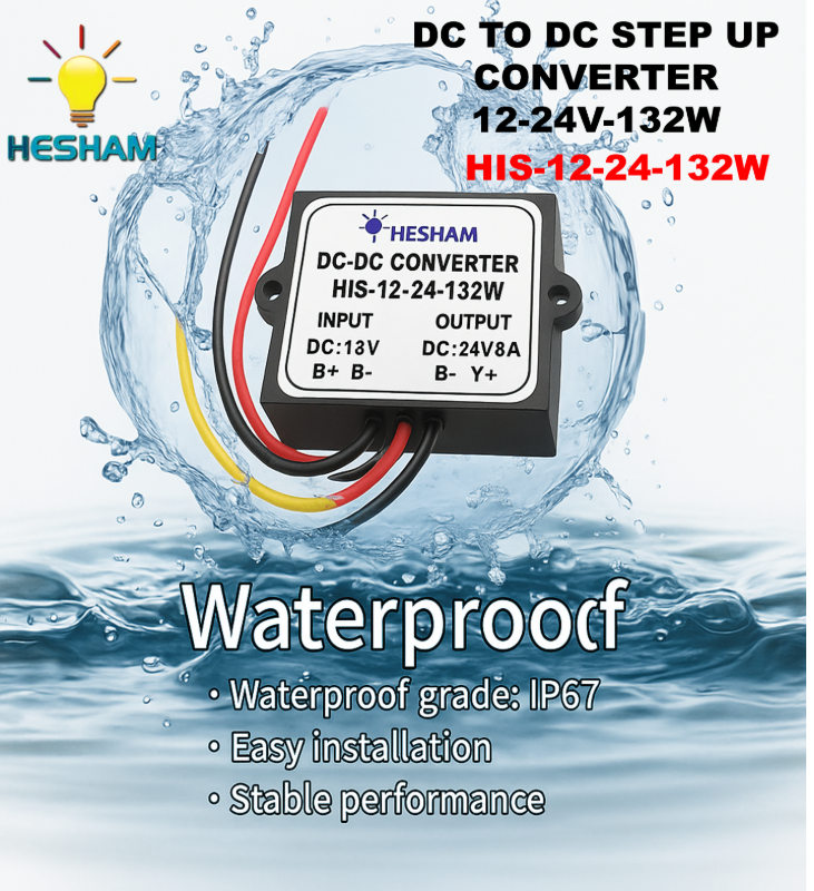 ♦ Product Name DC TO DC CONVERTER 12-24V-132W] ♦ Model No.: HIS-12-24-132W ♦ Input Voltage: DC 12V ♦ Input Voltage Range: DC 9-23V ♦ Output Voltage: DC 24V ♦ Output Current: 5.5A ♦ Output Power: 132W ♦ Conversion Efficiency: >93% ♦ Cable Length: 13-14cm ♦ Ripple (Full load test)40mV ♦ No-load current: : 3.5mA ♦ Working Temperature: -40~80℃( If ambient temperature exceeds 40°C, lower power use, or to enhance heat dissipation) ♦ Waterproof Rating: IP67 ♦ Protection: Over-current /Over-voltage/Over-heat/Short-circuit Waterproof, Anti-shock , Anti-dust protection ♦ Material: ABS Plastic